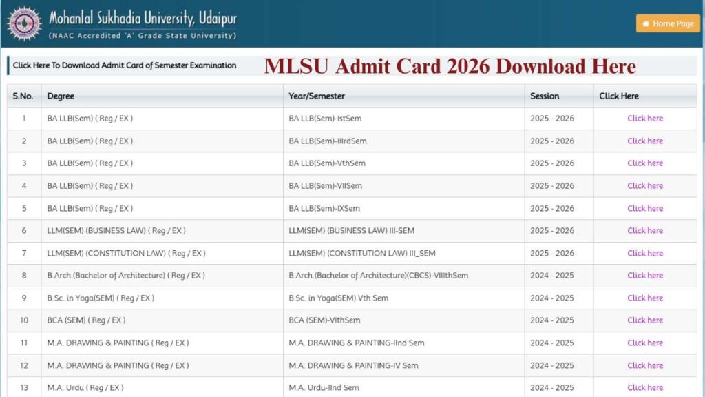 The Mohanlal Sukhadia University has officially released the MLSU Admit Card 2026 for LLB 1st and 2nd year students. Candidates who are preparing for upcoming law examinations can now download their hall tickets online from the official portal. This update is crucial as the admit card is a mandatory document required to appear in the examination.