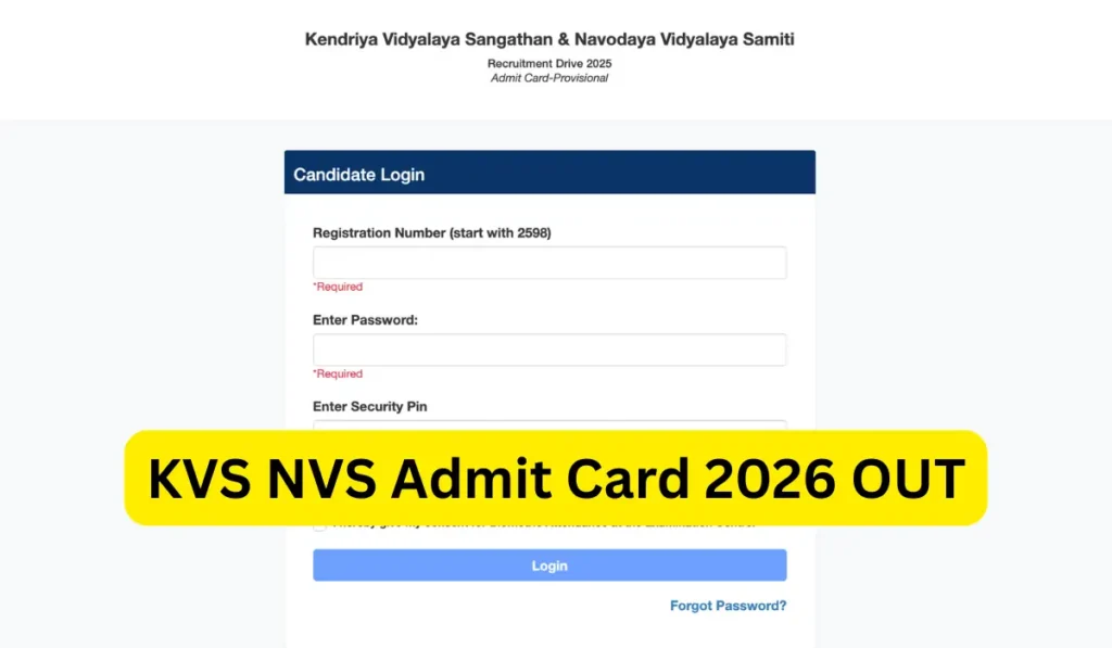 The direct link to download KVS NVS Tier 2 admit card 2026 is now active on the official websites. Candidates need to log in using their registration number and password or date of birth to access the hall ticket.